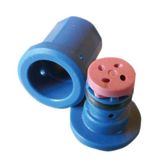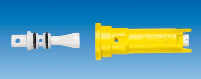Rozpylacze firmy Lechler są proste w montażu w typowych korpusach rozpylaczy, a demontaż ich wkładki jest łatwy i nie wymaga dodatkowych narzędzi. Są to rozpylacze uniwersalne i mogą być montowane we wszystkich rodzajach opryskiwaczy sadowniczych z pomocniczym strumieniem powietrza (PSP) oraz w opryskiwaczach tunelowych z systemem recyrkulacji cieczy. Są wśród nich m.in. płaskostrumieniowy rozpylacz eżektorowy IDK 90 (fot. 4), o kącie strumienia cieczy 90°. Zastosowana w nim dysza wylotowa o dużym przekroju zapobiega jego zapychaniu się, a zakres ciśnień roboczych to 2–15 barów. Rozpylacze IDK 90 charakteryzują się niską podatnością na znoszenie cieczy roboczej, szczególnie w optymalnym zakresie ciśnień.