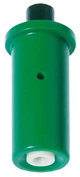 Natomiast tradycyjny, drobnokroplisty rozpylacz wirowy o pustym stożku TR (fot. 6), o specjalnej konstrukcji wkładki wirowej, umożliwia wytwarzanie jednorodnych pod względem wielkości kropli, które w strumieniu powietrza wentylatora docierają do opryskiwanej powierzchni nawet na znaczne odległości i bardzo dobrze pokrywają powierzchnię rośliny. Kąt strumienia cieczy wynosi 80°, a optymalny zakres ciśnienia to 8–15 barów.