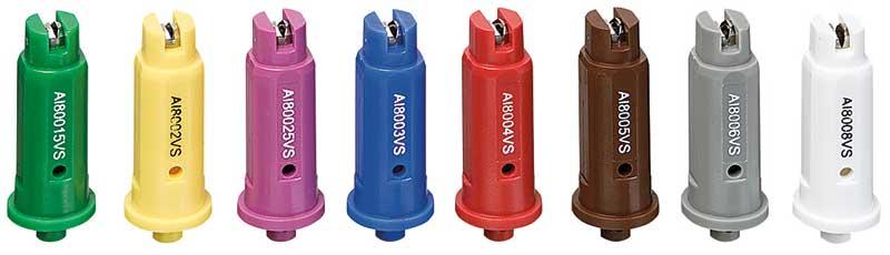 Dostępne są w rozmiarach od –015 do –06, wykonane ze stali szlachetnej, do stosowania w zakresie od 2 do 15 barów. W późniejszych fazach rozwojowych jabłoni, od różowego pąka, zaleca się stosowanie naprzemienne rozpylaczy eżektorowych o strumieniu płaskim i antydryfowych, w celu uzyskania pożądanej równowagi między zwiększonym zasięgiem opryskiwania a dobrym pokryciem z dysz antydryfowych. Uwaga – rozpylacze o strumieniu płaskim DG oraz AI, a także wirowe eżektorowe AITX wymagają większej staranności filtrowania cieczy. Zastosowanie filtrów w korpusach rozpylaczy, które umożliwiają prawidłowe stosowanie standardowych rozpylaczy wirowych, może być niewystarczające. Dlatego należy dobierać ich rozmiar również do rozmiaru dyszy.
