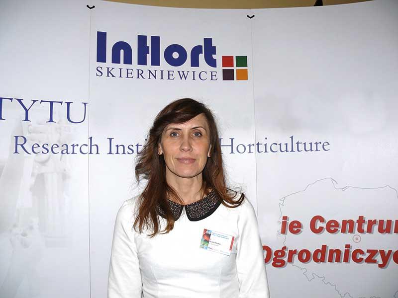 Dr Beata Meszka (fot. 5) z IO podsumowała wyniki uzyskane w projekcie Life+, w którym doświadczano działania aktywnej pary o temperaturze 60–70°C w odkażaniu gleby w celu ograniczenia patogenów i szkodników glebowych na plantacji matecznej w szkółce truskawki, a uzyskane wyniki porównywano do tych uzyskiwanych z zastosowaniem substancji czynnych: dazomet, chloropikryna i metam sodowy. Werticilioza (wywoływana przez Verticillium dahliae), której nasilenie w 2012 r. było bardzo duże, została znacznie zredukowana zarówno po zastosowaniu aktywnej pary, jak i metody chemicznej, co gwarantuje uzyskanie zdrowego materiału nasadzeniowego produkowanego w szkółkach np. truskawek. Dobre wyniki (skuteczność 85%) uzyskano także w tych kombinacjach doświadczalnych, gdzie zastosowano fumiganty: Nemasol 510 SL i Basamid 10 GR w niższych niż zalecane dawkach, co oznacza, iż dawki te mogą być obniżone bez ujemnego wpływu na skuteczność zabiegu. Po przeprowadzeniu fumigacji, w glebie znacznie wzrosła także liczebność bakterii: Pseudomonas spp. i Bacillus spp. W wyniku odkażania gleby, zarówno chemicznie, jak i przy użyciu aktywnej pary, na plantacji matecznej truskawek obserwowano mniejsze zachwaszczenie (także chwastami wieloletnimi jak babka, ostrożeń polny i skrzyp polny) oraz zwiększoną liczbę wytwarzanych rozłogów, a liczba uzyskanych sadzonek była 2–2,5-krotnie wyższa niż z roślin w kombinacji kontrolnej. Prelegentka podkreśliła, iż zastosowanie aktywnej pary nie przyniosło jednak oczekiwanych rezultatów w zwalczaniu populacji szkodliwych nicieni.