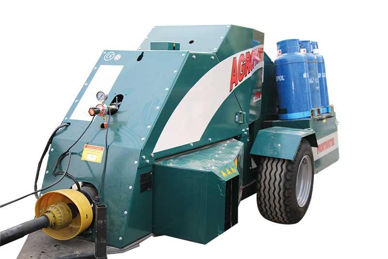 FrostBuster (fot. 5) to maszyna zaczepiana do ciągnika, wyposażona w palnik gazowy podgrzewający powietrze do temperatury 80–100°C, które następnie jest wydmuchiwane na boki przez wentylator napędzany od WOM. Według producenta, maszyna zapewnia skuteczną ochronę przed uszkodzeniami powodowanymi przez przymrozek (do –5,5°C) upraw na powierzchni 8 ha (jeśli mają kształt zbliżony do prostokąta). Przy szybkości przejazdu maszyny 5–8 km/godz. przez 10 minut można przejechać 1100–1300 m.b.
