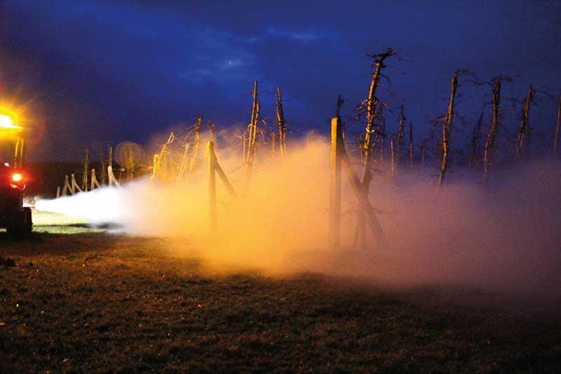 Do ochrony przeciwprzymrozkowej niezbędne jest użycie zamgławiaczy w wersji BIO (np. pulsFOG BIO modele K-22 BIO i K-30 BIO, fot. 8).Wynika to z faktu, że w innych wersjach urządzeń może dojść do zapłonu rozpylanej mieszanki i stworzenia zagrożenia pożarowego. Mimo, że na rynku dostępne są zamgławiacze, m.in. marek: LONGRAY, AiroFOG AR (AiroFOG AR 35), IGEBA TF (IGEBA TF 35, IGEBA TF 60, IGEBA TF 65, IGEBA TF 95, IGEBA TF 160 (fot. 9), BLACKHAWK, SUPERHAWK, to nie wszystkie spełniają ten wymóg.