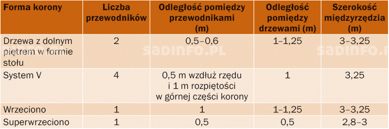 TABELA 1. Systemy prowadzenia gruszy stosowane w Holandii