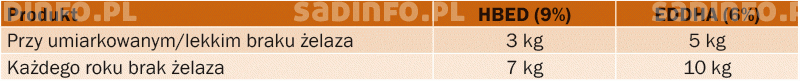 TABELA 4. Nawożenie doglebowe żelazem (za J. de Witem)