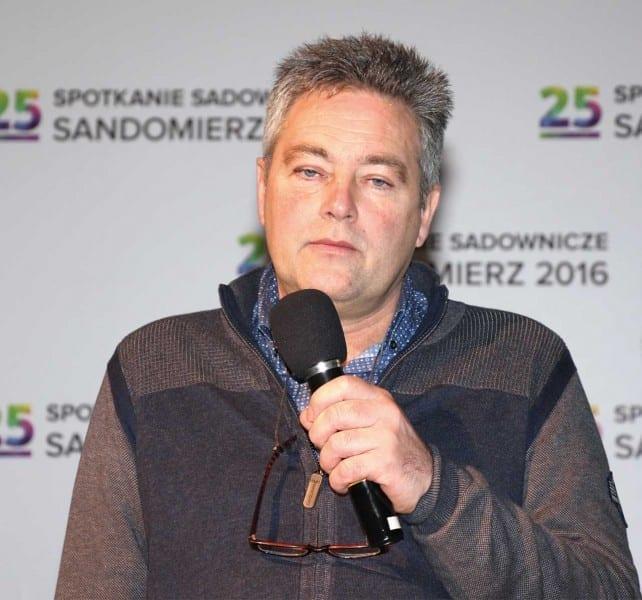 ‘Kordia’ i ‘Regina’ to czereśnie uprawiane w większości krajów Europy i uznawane za standardowe. Jakość ich owoców jest wysoka, choć żadna z tych odmian nie jest idealna – powiedział Gerard Poldervaart (fot. 1) z redakcji „European Fruitgrowers Magazine”. Do cech czereśni pożądanych przez sadowników należą: jakość owoców (jak u ‘Kordii’), wysoka plenność drzew i niska podatność owoców na pękanie (jak u ‘Reginy’). Sadownicy oczekują odmian, które będą dojrzewały w terminie ‘Burlata’ i sukcesywnie do okresu po odmianie ‘Regina’, jak np. Sweetheart®. Wyhodowanie wczesnej odmiany czereśni o wysokiej jakości owoców nie jest łatwe. Prace hodowlane prowadzone są w wielu ośrodkach, zwykle w klimacie cieplejszym i bardziej suchym niż panujący w Europie Północno-Zachodniej. Wiedza o mankamentach nowych odmian jest znikoma, bo hodowcy raczej informują o zaletach. Im „starsza” jest nowa odmiana, tym więcej wiadomo o jej wadach. Trudno oczekiwać, że sadownicy będą je odkrywać we własnych sadach – powiedział G. Poldervaart.