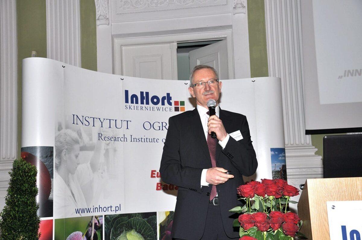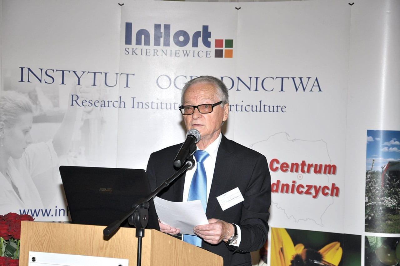 Instytut Ogrodnictwa (IO) jest jednym z największych ośrodków badań w zakresie ogrodnictwa w Polsce i Europie. Współpracuje z wieloma jednostkami naukowymi i badawczymi w kraju i za granicą, dzięki czemu wprowadza do praktyki wiele nowych rozwiązań. Program badawczy IO obejmuje zagadnienia związane z produkcją ogrodniczą, począwszy od badań nad biologicznymi podstawami produkcji owoców, warzyw i roślin ozdobnych, przez biotechnologię, genetykę i hodowlę twórczą roślin ogrodniczych, fitopatologię, entomologię, szkółkarstwo i ochronę zasobów genowych, po nawadnianie, przechowalnictwo i bezpieczeństwo żywności – informował prof. dr hab. Franciszek Adamicki (fot. 3), ówczesny dyrektor IO w Skierniewicach. W latach 2011–2014 w IO wyhodowano i zarejestrowano 15 odmian roślin sadowniczych, do krajowego rejestru COBORU zgłoszono 14 odmian oraz zarejestrowano 7 odmian roślin warzywnych, a 164 linie hodowlane przekazano do firm hodowlano-nasiennych. Odmiany wyhodowane w IO mają znaczący udział w polskiej produkcji ogrodniczej, od 7% w przypadku jabłoni do 40–50% w przypadku kapusty, cebuli i papryki oraz 70% w przypadku maliny.