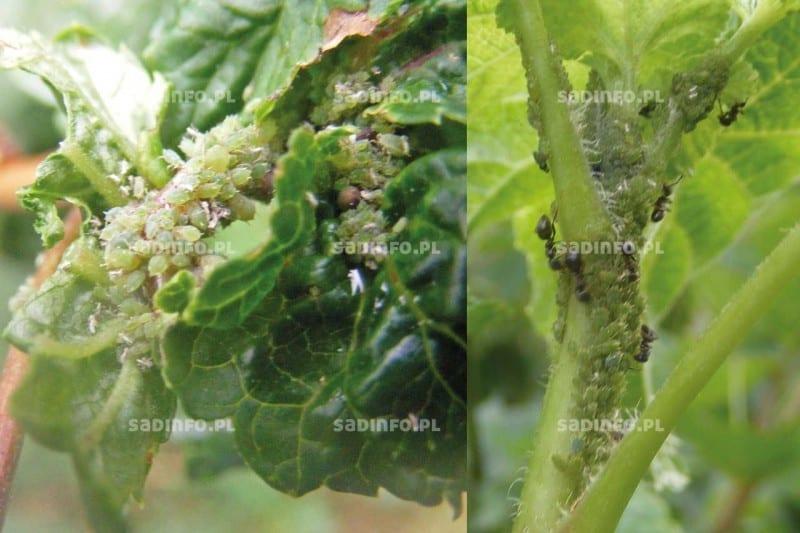 Latem ubiegłego roku mszyce licznie zasiedlały krzewy owocowe, głównie malinę i porzeczkę, zwłaszcza czarną. Postanowiłam poświęcić im więcej uwagi, ponieważ te szkodniki coraz trudniej jest zwalczać. Taki pogląd przedstawiają właściciele plantacji, a jako powody wymieniają obniżoną skuteczność i niewielką liczbę możliwych do użycia środków owadobójczych. Żerujące mszyce powodują wystąpienie charakterystycznych uszkodzeń na liściach i końcówkach pędów, a w skrajnych przypadkach mogą doprowadzić do zagłodzenia roślin. Takie okazy z reguły zakładają mniej pąków kwiatowych na następny sezon, przestają rosnąć, zamierają podczas suszy lub przemarzają zimą.