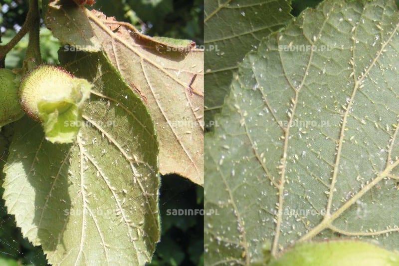 W uprawie leszczyny szkody może wyrządzać mszyca – zdobniczka leszczynowa (Myzocallis coryli). Szkodnik (fot. 3) ten jest typowym monofagiem, bytującym tylko na tym gatunku. Ta biaława lub białożółta mszyca osiąga tylko 1,5 mm długości. Zarówno osobniki dorosłe, jak i larwy wysysają soki z dolnej strony liści, nie wyrządzają przy tym większych szkód, chyba, że niezwalczane przez lata namnożą się do licznych kolonii. To jednak jest najczęściej problem działkowców.