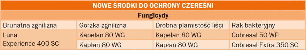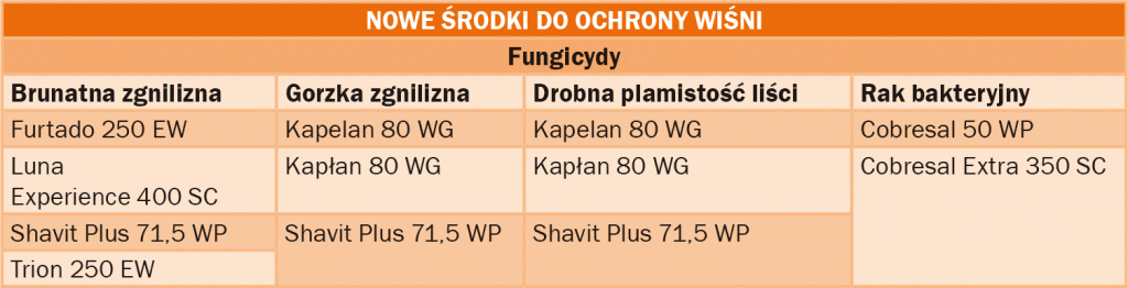 Podaję także informację, przed jakimi agrofagami ww. środki ochronią poszczególne gatunki roślin sadowniczych.