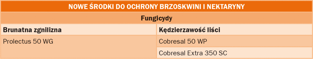 Spośród fungicydów rozszerzone zastosowanie obejmuje środki: Neoram 37,5 WG (miedź) o możliwość ochrony brzoskwini przed kędzierzowatością liści, Polyversum WP (Pythium oligandrum) o możliwość ochrony pozbiorczej owoców (zamgławiając komorę przechowalniczą) przed szarą pleśnią śliwek i brzoskwini, Qualy 300 EC (cyprodynil) o ochronę gruszy przed parchem, Score 250 EC (difenokonazol) – czereśni przed brunatną zgnilizną, Signum 33 WG (piraklostrobina + boskalid) – leszczyny i orzecha włoskiego przed kompleksem chorób, Topas 100 EC (penkonazol) – pigwy przed mączniakiem prawdziwym, Zato 50 WG (trifloksystrobina) – jabłoni przed gorzką zgnilizną, czereśni i wiśni przed zasychaniem liści i dziurkowatością liści, gruszy przed rdzą, śliw przed rdzą i dziurkowatością liści.
