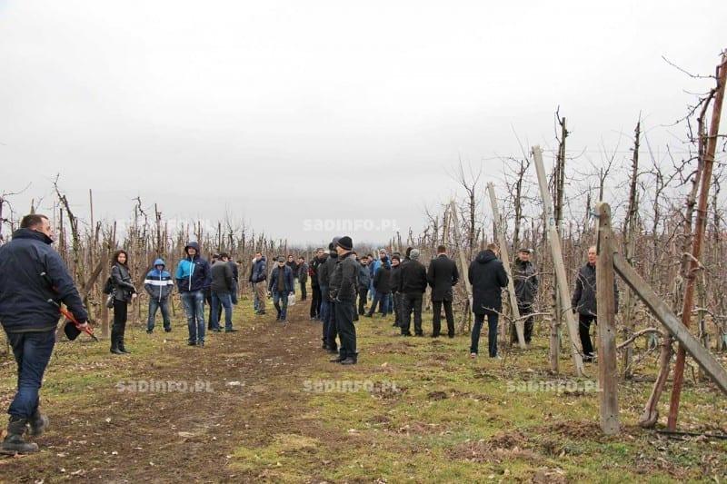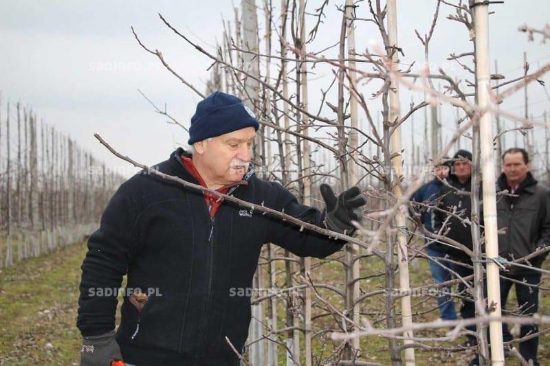 W sadzie jabłoniowym Czesława Florkiewicza w Dębianach G. Baab omówił zasady cięcia jabłoni oraz przeprowadził pokaz praktyczny (fot. 5). Zapewniał sadowników, że nie powinni obawiać się intensywnego cięcia drzew, szczególnie w odniesieniu do silnych pędów, które niepotrzebnie zacieniają koronę i nigdy nie obłożą się pąkami kwiatowymi. W koronie powinny znajdować się tylko pędy młode (nie starsze niż 3-letnie), na których zawiązanie pąków kwiatowych jest optymalne, owoce z nich są zazwyczaj dobrze wyrośnięte i wybarwione.