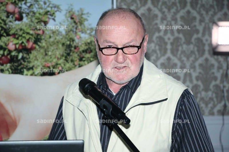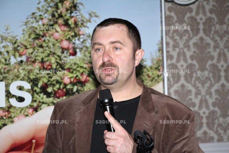 Nowe rozwiązanie proponowane przez naszą firmę do ochrony jabłoni i gruszy przed Venturia inaequalis to Faban 500 SC. Zawiera on dwie substancje aktywne: ditianon oraz pirymetanil, które w wyniku specyficznego procesu syntezy połączone są w strukturę kokryształu. Pierwsza z nich zapobiega kiełkowaniu zarodników patogenu, tworząc stabilną i długotrwałą warstwę ochroną fungicydu na powierzchni rośliny. Druga natomiast wnika w wierzchnie warstwy tkanek i blokuje wrastanie strzępek grzybni rozwijającej się z zarodników znajdujących się na powierzchni liści – informował dr Jacek Lewko (fot. 3) z BASF. Dzięki strukturze kokryształu obie substancje wykazują większą skuteczność w zwalczaniu sprawcy parcha jabłoni niż w przypadku stosowania obydwu produktów oddzielnie lub w postaci mieszaniny zbiornikowej. Dawka środka w przypadku jabłoni i gruszy wynosi 1,2 l/ha, natomiast zalecane jest użycie go do zabiegów zapobiegawczych od początku wegetacji, szczególnie w czasie silnych infekcji i długo utrzymujących się niekorzystnych warunków pogodowych, kiedy mamy do czynienia z powtarzającym się zwilżeniem liści. Z uwagi na nową technologię preparat Faban 500 SC działa skutecznie w szerokim zakresie temperatury, ponieważ pirymetanil został ustabilizowany w kokryształach. Sprawiło to, że wymieniona substancja aktywna utrzymuje się na powierzchni blaszki liściowej nawet w warunkach wyższej temperatury. Czysty pirymetanil w temperaturze powyżej 17°C nie zapewnia skutecznej ochrony. Faban 500 SC stosowany w okresie kwitnienia daje również efekt ochrony przed porażeniem kwiatów szarą pleśnią. Karencja dla jabłek i gruszek wynosi 56 dni.