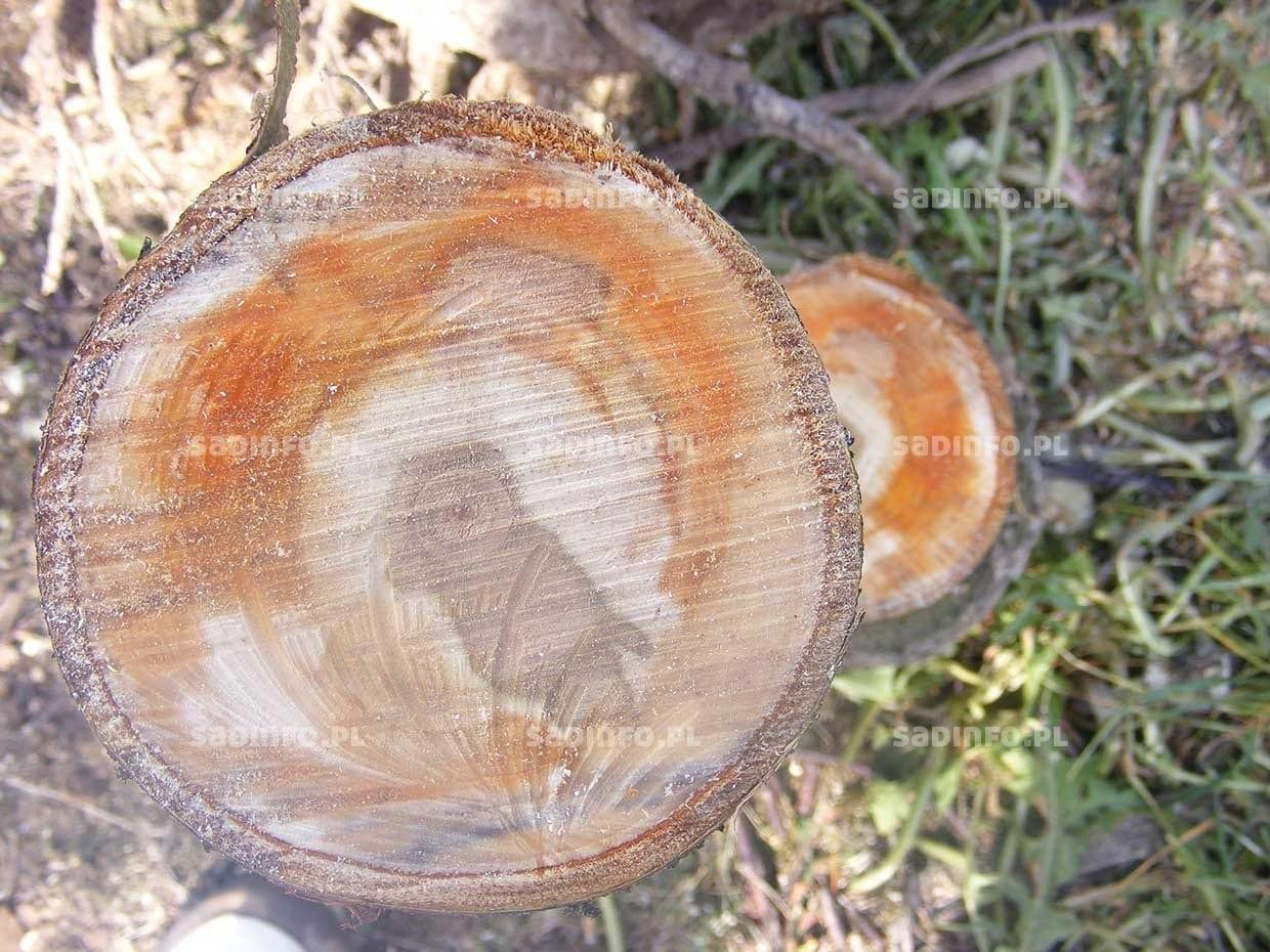 Bywa, że drzewka dopiero w drugim roku po posadzeniu nie rosną. Może to być oznaką zmęczenia gleby, często jednak jest skutkiem zainfekowania V. dahliae. Brak im nowych przyrostów, rozwijające się organy więdną (od najstarszych liści, fot. 3), liście opadają, a ogołocone pędy zasychają od wierzchołków. Można o te objawy podejrzewać suszę. Często jednak po deszczach sytuacja nie poprawia się. Należy wtedy szukać innych przyczyn oceniając część nadziemną i podziemną roślin. Wówczas można zauważyć, że korzenie są słabo rozwinięte, pozbawione nowych przyrostów, a część z nich jest zbrązowiała. Na przekroju poprzecznym grubszych korzeni, pnia i grubszych pędów widoczne są zbrązowienia na całym obwodzie lub jego części. Dotyczy to wiązek przewodzących transportujących wodę ze składnikami pokarmowymi.