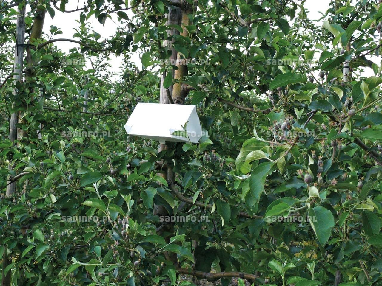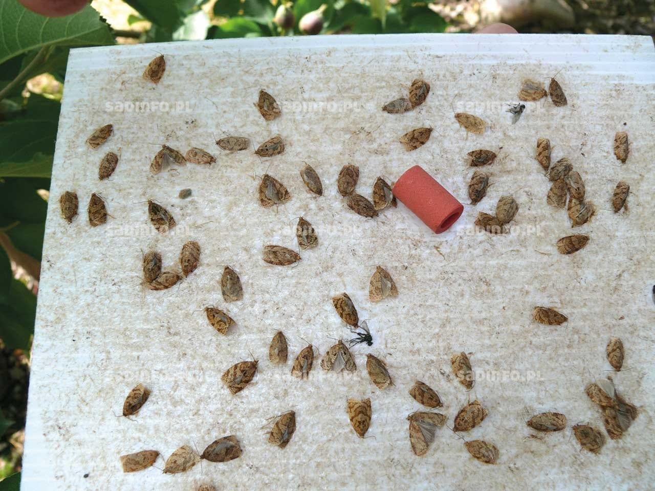 W minionym sezonie zarejestrowano sady, w których zwójkówki uszkodziły w mniejszym lub większym stopniu od kilkunastu do kilkudziesięciu procent owoców. Było to najczęściej wynikiem zaniechania regularnych lustracji lub błędów popełnionych przy ich zwalczaniu. Do regulacji liczebności tych szkodników jest zarejestrowanych kilka dobrych i w miarę bezpiecznych środków (zakwalifikowanych do Integrowanej Ochrony), np.: Affirm 095 SG, Coragen 200 SC, Runner 240 EC, Steward 30 WG czy Rumo 30 WG. Są także dobrze opracowane cykle życiowe ważniejszych gatunków oraz sposoby ich monitorowania, a także progi zagrożenia. Znane są również ważniejsze czynniki naturalne ograniczające ich liczebność. Są to przede wszystkim parazytoidy jaj, larw i poczwarek. Wśród nich jednym z najważniejszych gatunków jest maleńka (0,5 mm) błonkówka o nazwie kruszynek. Szczególnie chętnie pasożytuje on jaja składane w złożach, np. zwójki różóweczki. W sprzyjających warunkach, ten mikroskopijny owad może wyniszczać nawet ponad 60% jaj tej zwójki. Rola kruszynka jako parazytoida, choć trudno dostrzegalna (trzeba wykonać specjalne obserwacje) jest nie do przecenienia, ale nie zawsze wystarczająca z gospodarczego punktu widzenia. Bardzo ważnym elementem systemu integrowanego zwalczania tych szkodników są także pułapki feromonowe umożliwiające ocenę składu gatunkowego występujących w danym sadzie zwójkówek (fot. 4). Trzeba jednak pamiętać, że pułapki feromonowe mogą przywabiać motyle z dość znacznych odległości – nawet kilkuset i więcej metrów. W związku z tym, przy ocenie liczebności odłowionych motyli, szczególnie w sadach mniejszych (kilkuhektarowych), należy także uwzględnić otoczenie sadu. W przypadku sąsiedztwa dużych kompleksów drzew i krzewów liściastych pewna liczba motyli może nalatywać właśnie stamtąd.