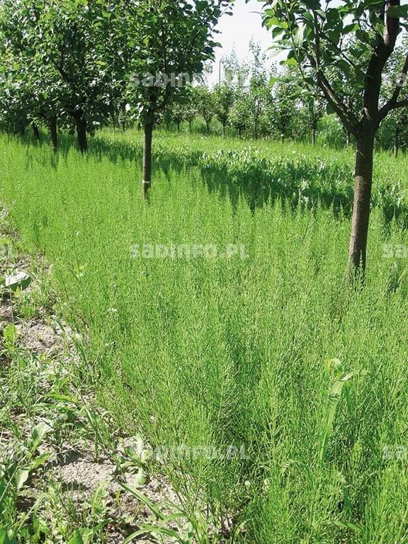 Integrowana ochrona roślin przewiduje systematyczne stosowanie środków chwastobójczych tylko pod koronami drzew. Tymczasem do rozwoju chwastów dochodzi również w pasach murawy, w międzyrzędziach. W sadach ekologicznych rośliny kwiatowe, które przywabiają owady miododajne i pożyteczne (drapieżców i parazytoidy), są pożądane, a wręcz niezbędne. W sadach z intensywną ochroną chemiczną kwitnące chwasty będące dobrym pożytkiem pszczelim, np. mniszek pospolity i koniczyna biała, sprawiają kłopot, gdyż znajdujące się na nich pozostałości środków ochrony roślin, znoszone z opryskiwanych drzew, mogą prowadzić do podtrucia owadów zapylających. Ze względu na wycofanie z sadów fluroksypyru (Starane 250 EC) i MCPA (Chwastox Extra 300 SL), które służyły do selektywnego zwalczania chwastów dwuliściennych w murawie, jedyną i to niezbyt skuteczną metodą ograniczającą kwitnienie tych chwastów pozostaje koszenie.