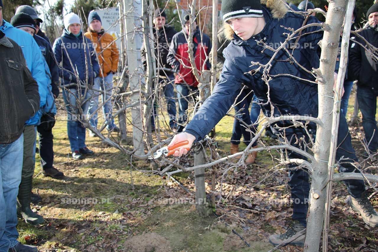 Cięcie na „klik” jest zalecane w intensywnych sadach jabłoniowych w celu zachowania równowagi między wzrostem wegetatywnym i owocowaniem oraz utrzymania regularności owocowania i równomierności rozłożenia owoców w koronie drzewa. Cięcie to obejmuje skracanie pędów zawsze w obrębie przyrostu jednorocznego – mówił Jarosław Kuklewski (fot. 1), doradca sadowniczy FruitAkademii podczas pokazu cięcia jabłoni przeprowadzonego 12 lutego ub.r. w Palczewie k. Warki w sadzie jabłoniowym Piotra Kiliańskiego. Według tego doradcy cięcie drzew tą metodą można rozpocząć w każdym roku w sadach, w których dotychczas cięto jabłonie inaczej, jak i po posadzeniu drzew. Ma ono wpływ na charakter wzrostu i owocowania młodych jabłoni w późniejszym czasie, szczególnie tych z rozbudowaną koroną i typu knip-boom. Drzewka po posadzeniu należy przyciąć wiosną w celu pobudzenia ich do wzrostu oraz niedopuszczenia do ogałacania się pędów. Wówczas wycięte powinny być pędy silnie konkurujące z przewodnikiem (fot. 2). Zdaniem doradcy nie powinno się jednak w pierwszym roku po posadzeniu drzewek usuwać zbyt wielu pędów, gdyż do przyjęcia się roślin, prawidłowego wzrostu i formowania korony potrzebna jest odpowiednia liczba liści. Nadmiar pędów w koronie można usunąć dopiero w następnym roku.