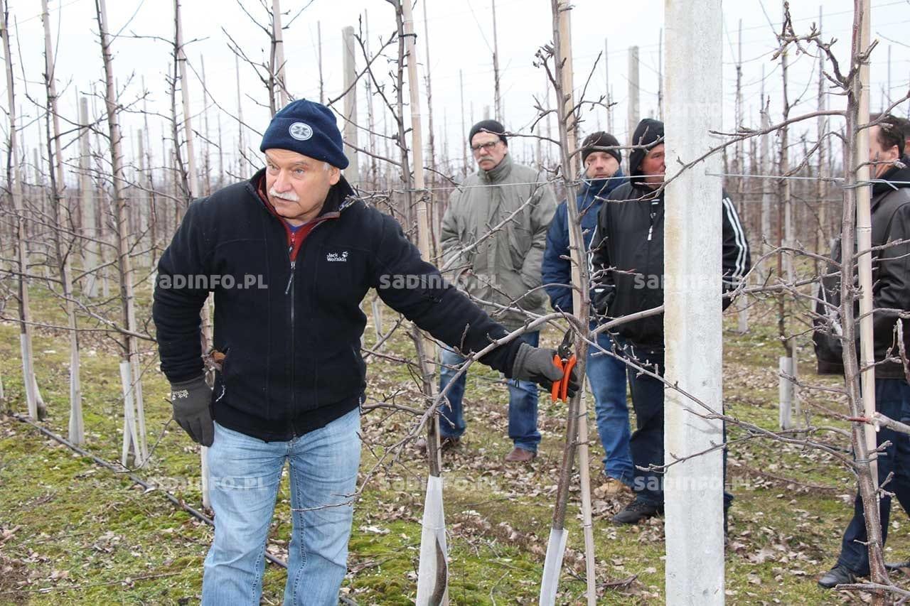 Podczas pokazu cięcia drzew w sadzie jabłoniowym Czesława Florkiewicza w Dębianach, który odbył się w marcu ub.r., dr Gerhard Baab (fot. 7) specjalista z Centrum Kompetencji w Klein-Altendorf w Niemczech omówił zasady cięcia jabłoni na „klik”. Zapewniał sadowników, że nie powinni obawiać się intensywnego cięcia drzew, szczególnie w odniesieniu do silnych pędów, które niepotrzebnie zacieniają koronę i nigdy nie obłożą się pąkami kwiatowymi. W koronie powinny znajdować się tylko młode pędy (nie starsze niż 3-letnie), na których zawiązanie pąków kwiatowych jest optymalne, owoce z nich są zazwyczaj dobrze wyrośnięte i wybarwione.