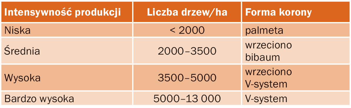 Tabela 1. Systemy uprawy gruszy