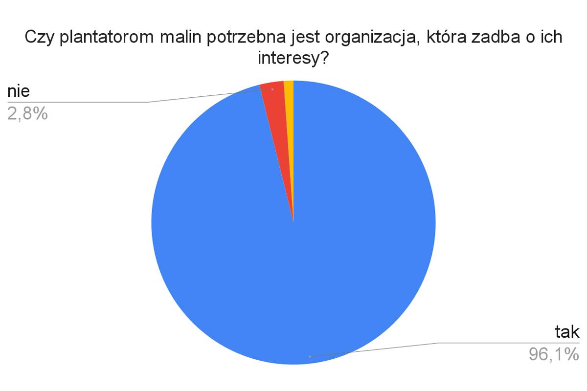 Pan Adam, który sam jest producentem malin, postanowił zapytać innych plantatorów o potrzebę utworzenia reprezentacji branży, która jak dotąd jeszcze nie powstała. Postanowiliśmy zwizualizować wyniki ankiet. Jak odpowiedzieli plantatorzy?