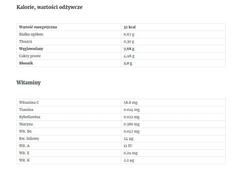 W jednej szklance truskawek znajduje się 82 mg witaminy C, co stanowi 120% dziennego zapotrzebowania u dorosłych. Owoce dostarczają także witamin z grupy B (tiaminę, ryboflawinę, niacynę, pirydoksynę, kwas foliowy) oraz witaminy A i E. Karoten, czyli prowitamina A, bierze udział w procesie widzenia oraz ma wpływ na prawidłowy wzrost dzieci i młodzieży. Wyjątkowe właściwości zdrowotne truskawek wynikają z szeregu obecnych w nich składników mineralnych. Do najcenniejszych należą: potas (aż 153 mg
