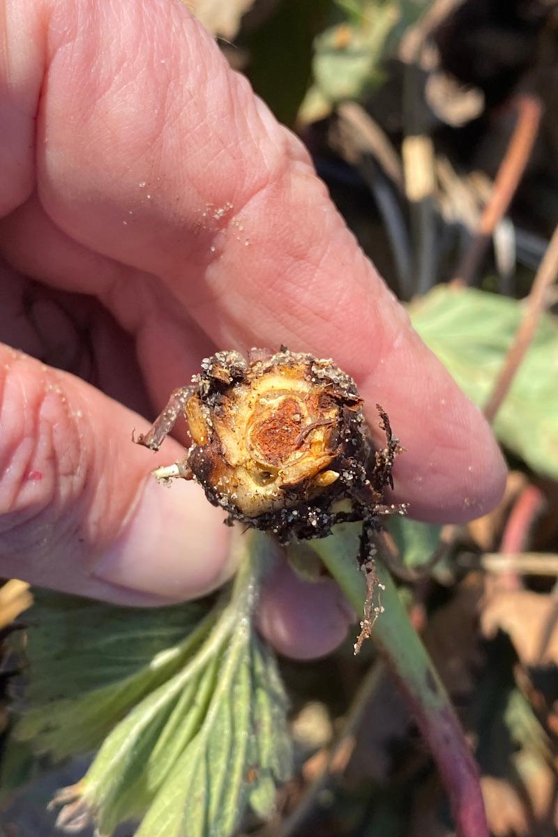 Ubiegłoroczne drastyczne wzrosty cen włóknin polipropylenowych spowodowały, iż część plantatorów postanowiła pozostawić swoje nasadzenia na zimę bez zabezpieczenia przeciwmrozowego. W efekcie na wielu plantacjach obserwuje się silne uszkodzenia mrozowe szyjki korzeniowej. Stopień tych uszkodzeń jest uzależniony głownie od lokalizacji plantacji, odmiany, zdrowotności roślin oraz sposobu nawożenia.