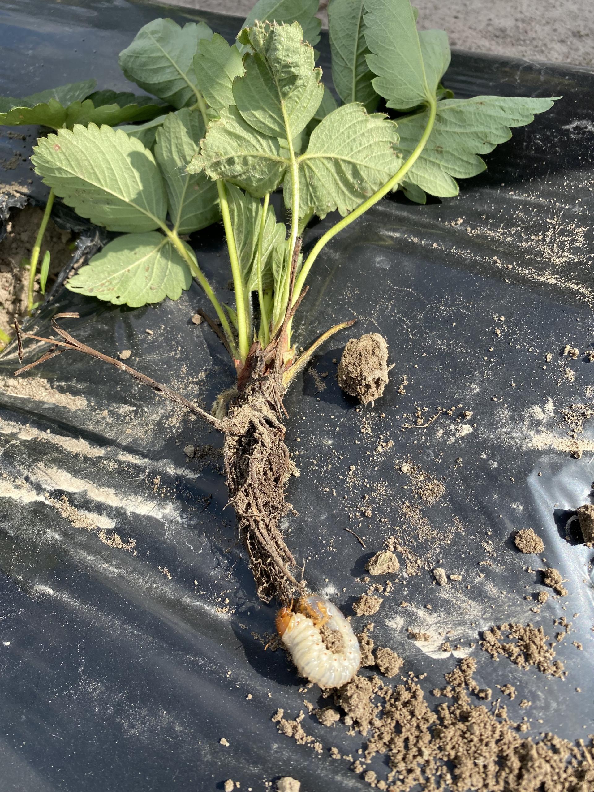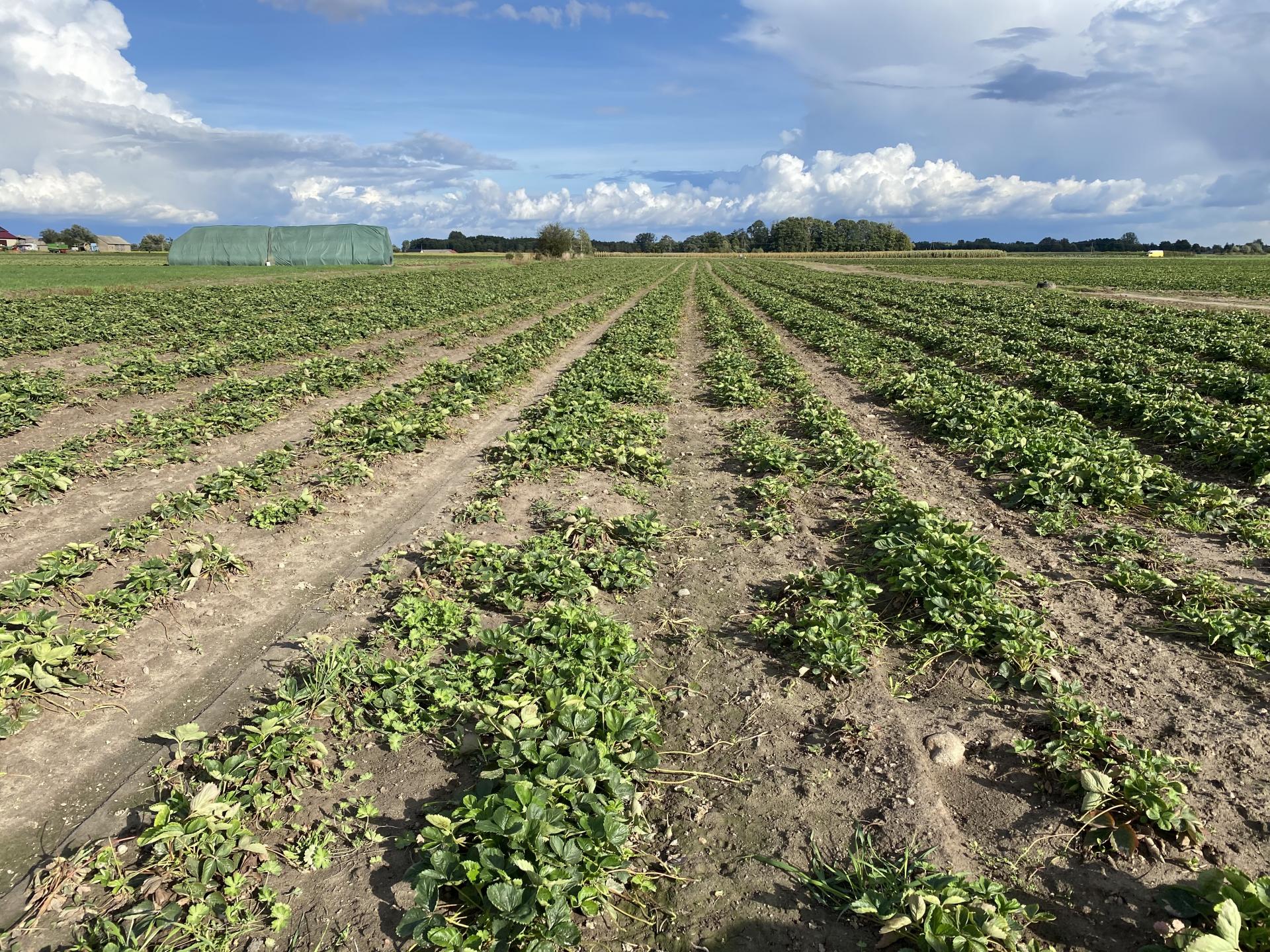 Plantacja truskawki zdziesiątkowana przez pędraki w rejonie Czerwińska nad Wisłą