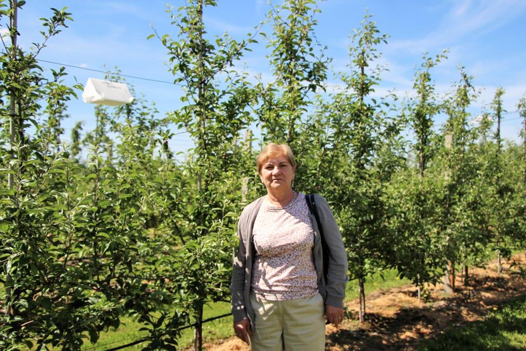 Dr hab. Barbara Łabanowska (fot. 3), prof. IO w Skierniewicach poinformowała o aktualnym zagrożeniu ze strony szkodników w uprawach sadowniczych. Na jabłoniach lokalnie w dużym nasileniu występują zwójki liściowe oraz owocówka jabłkóweczka. Najlepszym terminem ograniczającym populację pierwszej grupy szkodników jest faza różowego pąka jabłoni, ponieważ wtedy większość strategicznych gatunków występuje w fazie gąsienic (wyjątek zwójka różóweczka). Zwójki można zwalczać także po kwitnieniu jabłoni oraz w dalszej części sezonu. Jednak, aby właściwie wyznaczyć termin należy monitorować aktywność poszczególnych gatunków. Służą do tego pułapki feromonowe. Na potwierdzenie tego Tomasz Gasparski z firmy Bayer (fot. 4) przedstawił wyniki odłowów samców na pułapkach feromonowych kilku gatunków zwójkówek i owocówki jabłkóweczki w dwóch lokalizacjach. W jednej (od 24 maja do 8 czerwca br.) odłowiły się zaledwie 3 motyle owocówki jabłkóweczki, natomiast drugiej (w tym samym terminie) – ponad 20 sztuk. Świadczy to o odmiennym zagrożeniu ze strony tego szkodnika w tych sadach. W br., jak chyba w żadnym innym, warto dołożyć starań, aby owocówka jabłkóweczka nie dokonała uszkodzeń zawiązków i nie zredukowała zbioru handlowego oraz nie zniweczyła szansy na eksport jabłek.