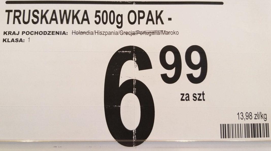 W oczekiwaniu na krajowe owoce konsumenci stęsknieni za smakiem lata mogą w marketach kupić zagraniczne truskawki. Jeden z grójeckich sklepów oferuje hiszpańską odmianę ‘Rociera‘ w I klasie za cenę blisko 14 zł/kg.