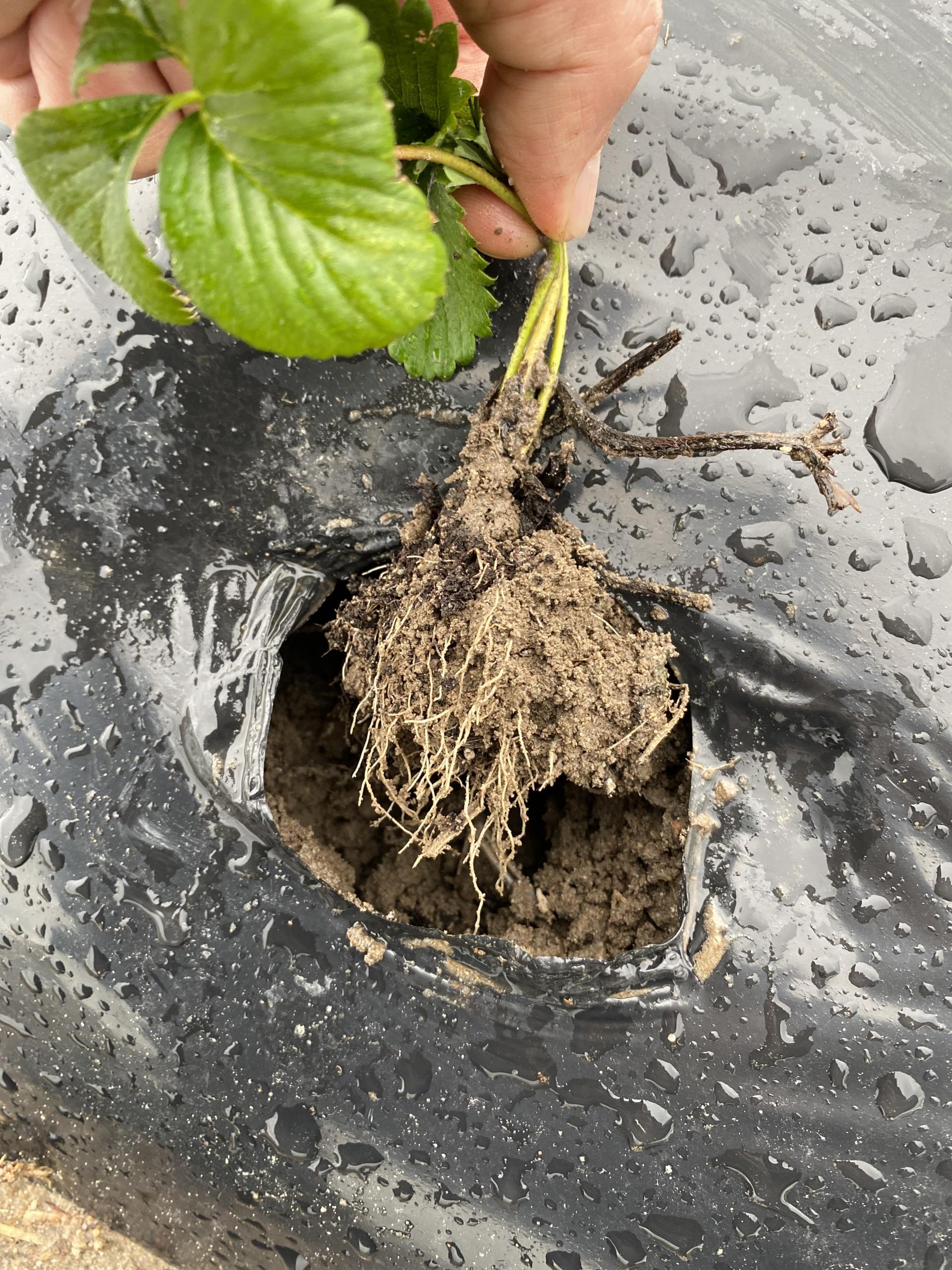 Podstawą prawidłowego wzrostu i rozwoju roślin jest dobrze rozbudowany system korzeniowy. Głównymi pierwiastkami odpowiadającymi za rozwój korzeni są fosfor i wapń, jednak aby proces ten przebiegał bez zakłóceń w glebie nie może zabraknąć żadnego ze składników pokarmowych. Lustrując nowo założone plantacje należy zwrócić uwagę na stan systemu korzeniowego, oceniając potencjalną objętość gleby jaką penetrują korzenie, ich gęstość oraz długość najdrobniejszych włośników. Korzenie roślin powinny być jasne (kremowobiałe), bez jakichkolwiek oznak zbrązowienia, które mogłyby świadczyć o nieprawidłowym rozwoju lub problemach chorobowych. W przypadku słabego przekorzenienia się roślin należy jak najszybciej zastosować dobry preparat humusowy wspomagający rozwój masy korzeniowej. Może to być sypki koncentrat kwasów humusowych H-850 (w dawce 2,0-3,0 kg na ha), płynny preparat Humik (3,0 -5,0 l na ha) zawierający kwasy humusowe i betainy stymulujące rozwój włośników korzeniowych lub Carbohumik. Alternatywą może być również płynny stymulator rozwoju systemu korzeniowego BlackJak (2,0 litr na ha), wytwarzany również z leonardytów, ale z zastosowaniem technologii nadającej produktowi niski odczyn. Preparatem dedykowanym do intensyfikacji rozwoju systemu korzeniowego jest również Goteo (3,0-5,0 l na ha) zawierające specyficzne fitohormony stymulujące rozwój włośników i ich penetrację gleby. Nowym produktem do stymulacji rozwoju systemu korzeniowego, wzbogaconym w aminokwasy i inne związki organiczne biorące udział w rozwoju ryzosfery jest Askan (3,0-6,0 litr na ha). Ubiegłoroczne testy tego produktu prowadzone na poletkach Doradcy Jagodowego wykazały jego korzystny wpływ zarówno na wielkość plonu owoców jak i na dynamikę plonowania truskawki czerwcowej odm. Opera. Wymienione preparaty humusowe mogą być stosowane zarówno poprzez system fertygacyjny jak i poprzez rozlanie wzdłuż rzędów.