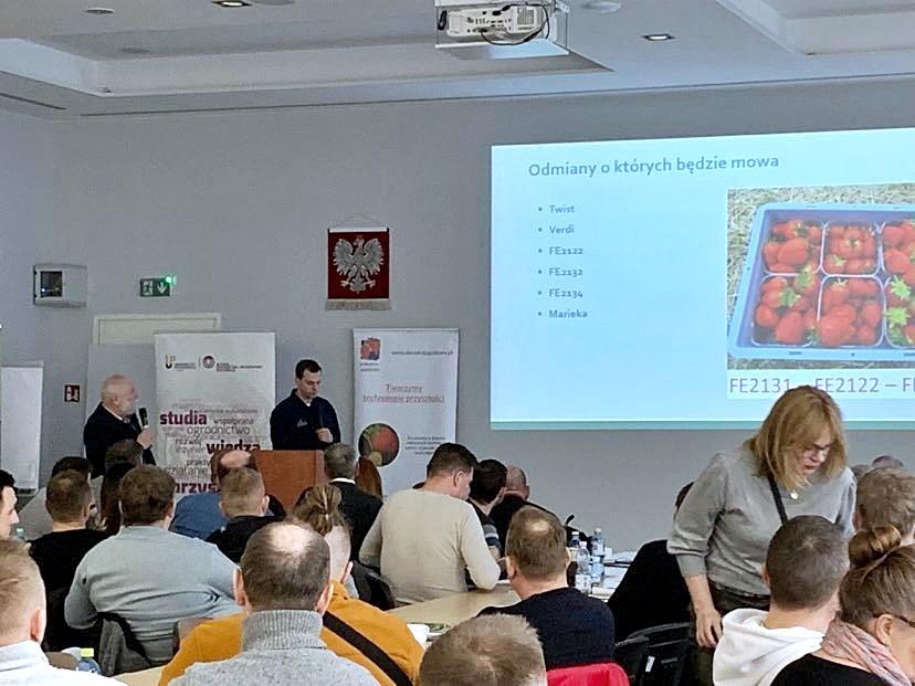 Wykłady Izy Witczak z firmy Boryna oraz zaproszonego gościa z Niderlandów – Remko Riemslang z firmy Van Alphen, przybliżyły zarówno odmiany truskawki już znane i cenione przez plantatorów (jak przykładowo `Verdi`, `Twist`) ale i nowości odmianowe wprowadzane w tym roku do uprawy (Marieka, Glorielle, Serafine).