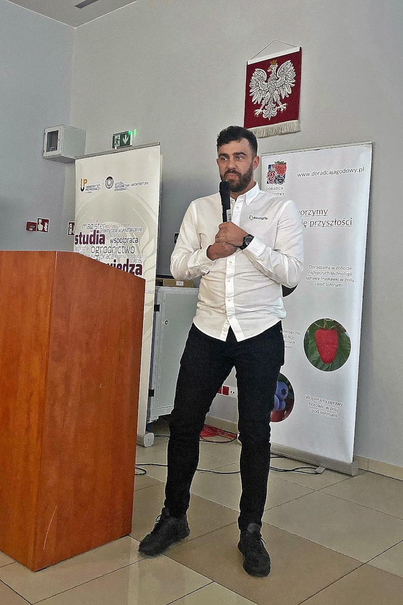 Wykład Szymona Kamińskiego z firmy Bioagris pt. „Sprawdzone techniki poprawy jakości i trwałości owoców miękkich” poświęcony był zagadnieniom innowacyjnych rozwiązań zwiększających odporność mechaniczną truskawki i maliny za pomocą dokarmiania poza korzeniowego nawozami zawierającymi wapń (np. Biocal) w połączeniu ze stosowaniem związków blokujących biosyntezę etylenu (na przykładzie produktu Xstress).