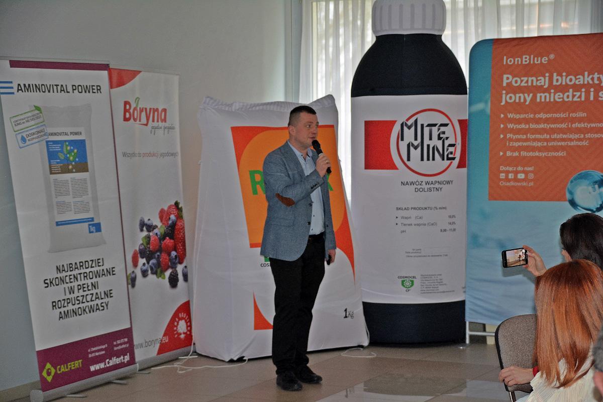 Z kolei Rafał Bibrowski z firmy EkoWap podczas prelekcji „Jak wapnować glebę aby skutecznie uzupełnić wapń” przybliżył plantatorom rolę wapnia w utrzymaniu optymalnego odczynu oraz struktury gruzełkowatej gleby jak również uwypuklił istotne funkcje tego pierwiastka w budowaniu odporności mechanicznej owoców jagodowych. Prelegent przedstawił produkty bezpieczne do stosowania w uprawach truskawki wiosną i podkreślał, iż w bieżącej fazie wegetacji jest jeszcze czas na uzupełnienie wapnia w ryzosferze.