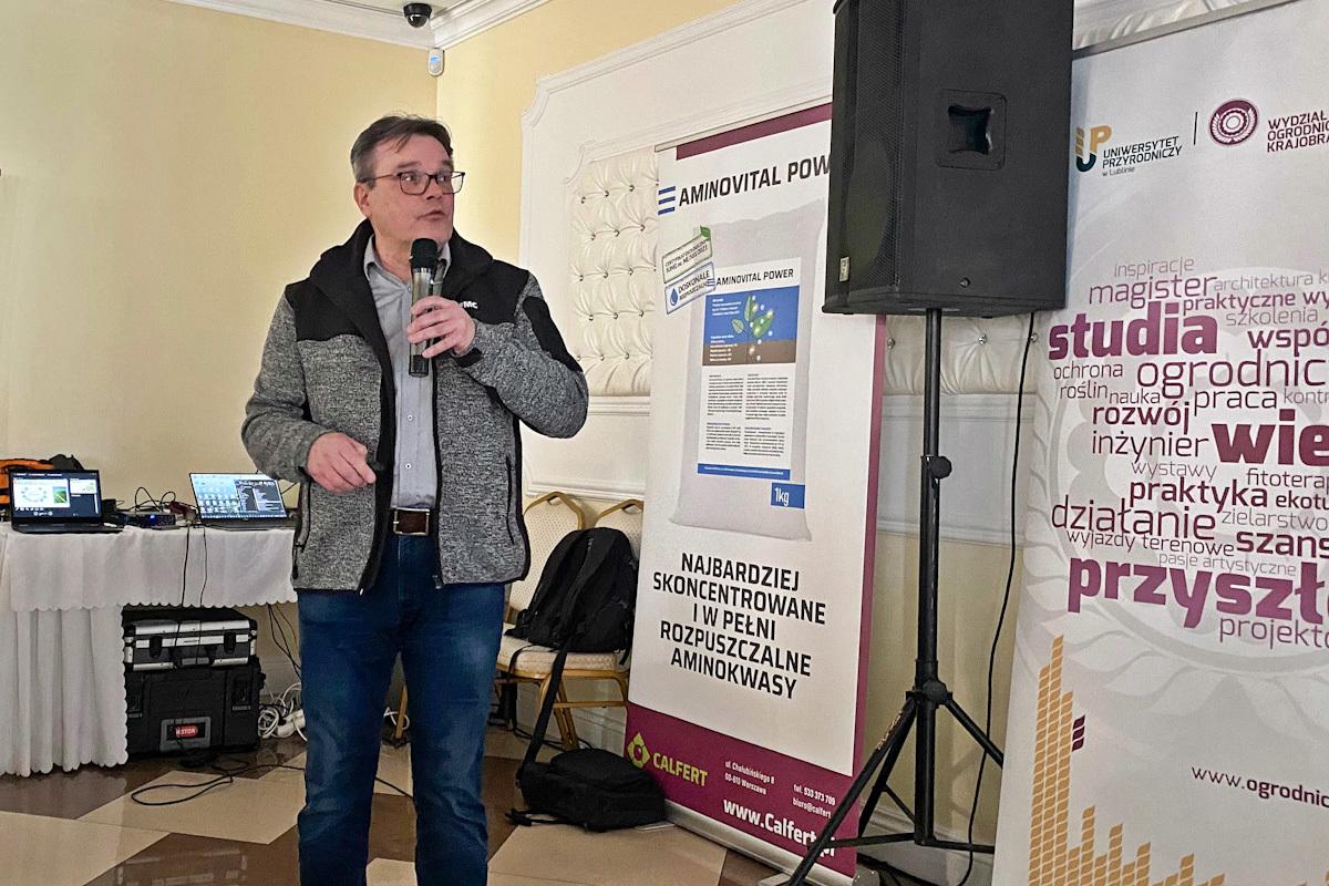 Ogromnym zainteresowaniem słuchaczy cieszył się wykład Jarosława Barszczewskiego z firmy Calfert, który przedstawił praktyczne spojrzenie na łączenie nawożenia posypowego z fertygacją. Ten doświadczony specjalista, od kilkudziesięciu lat zajmujący się doradztwem agrotechnicznym w uprawach jagodowych, zwrócił uwagę na rosnące lawinowo koszty upraw wymuszające rozważne gospodarowanie nawozami. Zdaniem prelegenta precyzyjna fertygacja odpowiednio dobranymi składnikami jest w stanie obniżyć całościowe koszty żywienia roślin, bez ryzyka spadku ich potencjału plonotwórczego.