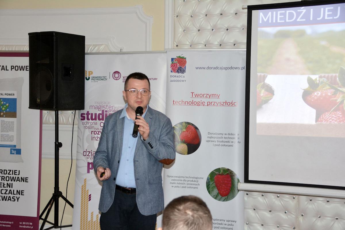 Ogromne zainteresowanie wzbudził wykład Alberta Zwierzyńskiego z firmy Doradca Jagodowy, który przedstawił wyniki badań nad wykorzystaniem różnych form miedzi w uprawach jagodowych. Prelegent kompleksowo przedstawił historię wykorzystania miedzi w żywieniu i ochronie roślin, efektywność różnych form jak również najnowsze wyniki badań dowodzące o korzystnych właściwościach tego pierwiastka w ograniczaniu presji chorobowej i poprawie odporności roślin na stres biotyczny.