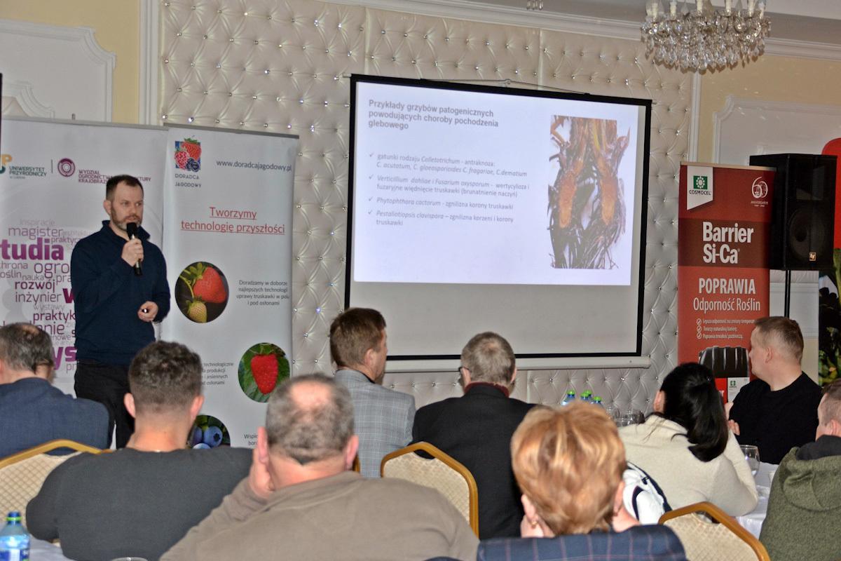 Podsumowaniem konferencji był wykład dr Zbigniewa Jarosza (Doradca Jagodowy) który przedstawił wyzwania jakie czekają plantatorów w nadchodzącym sezonie wegetacyjnym w ochronie i biostymulacji gatunków jagodowych. Prelegent szeroko omówił zmiany w branży ogrodniczej wynikające z aktualnych problemów gospodarczych, które będą rzutowały na podaż owoców jagodowych w bieżącym sezonie wegetacyjnym. Plantatorzy z dużą uwagą wysłuchali również wskazówek agrotechnicznych na początek sezonu oraz planów pragmatycznych doświadczeń modyfikujących stosowaną technologię jagodową.