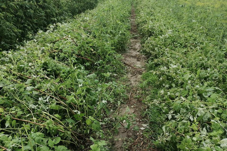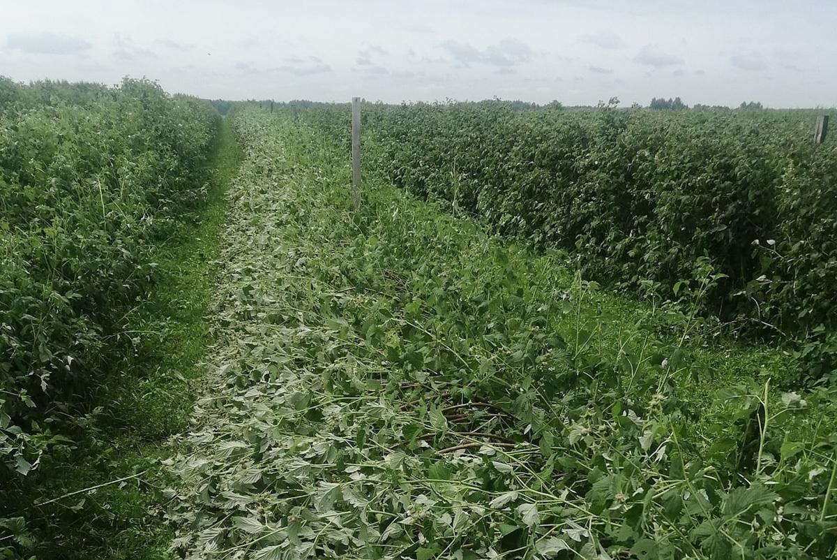 – Dodatkowo, tam gdzie nie było gradu otrzymuje dużo zgłoszeń o położonych przez wiatr plantacjach malin – dodaje pan Sławomir. Obok strat jakościowych i ilościowych, to kolejny problem w kontekście uszkodzeń całych pędów u podstawy, jak i poderwanych systemów korzeniowych.