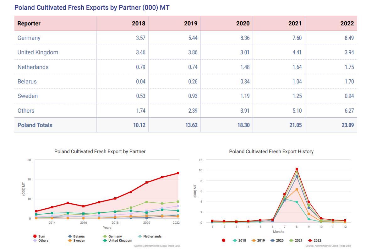 Zmienia się struktura polskiego eksportu borówek. Kluczowym rynkiem stały się Niemcy, niemniej zauważamy również dywersyfikacje w wysyłkach.