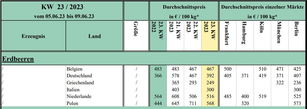 źródło: Raport Federalnego Ministerstwa Rolnictwa za 23 tydzień 2023 roku