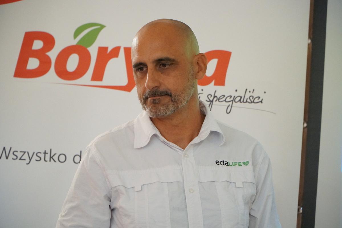 Kolejny wykład dotyczył zastosowania miedzi systemicznej w uprawie roślin jagodowych. Swoje doświadczenia przedstawiał Luis Fernando Games (EdaLife), który na co dzień pracuje w Hiszpanii. Konieczność zmian w podejściu do ochrony nie ominęła także tego kraju. Na wstępie gość z zagranicy opowiedział o zmianach, które w ostatnich latach musiały się dokonać w jego kraju. Zdecydowanie rolnictwo bardzo intensywne przechodzi w stronę uprawy z większą ilością rozwiązań biologicznych. Stosowana jest lekka orka, a część okrywy roślinnej jest pozostawiana, co chroni glebę. Stosuje się również coraz więcej organicznych nawozów, co jego zdaniem ma pozytywny wpływ na glebę. Plantatorzy natomiast ograniczają zabiegi chemiczne nastawiając się na wzmacnianie naturalnej odporności roślin. Warto jednak podkreślić, że wynika to po prostu z konieczności i ograniczeń ze strony prawodawstwa UE. Jako przykład działań związanych ze zmianami, które mają miejsce na europejskich plantacjach, gość z zagranicy przywołał program Power Soil, który ma na celu wzmocnienie roślin i ich naturalnej odporności. Podstawą tutaj są analizy gleby, a także odpowiednie stymulowanie roślin, aby wytwarzały silniejsze tkanki – chodzi o aktywację systemu samoobrony roślin. Innowacją w tym zakresie jest IonBlue, preparat, który w swoim składzie posiada miedź i siarkę. Jest to innowacyjne rozwiązanie z tego względu, że zawiera bioaktywną frakcję miedzi, która bardzo szybko wnika do roślin. Zwykle przy stosowaniu miedzi obserwujemy powstrzymanie wzrostu roślin, w przypadku IonBlue otrzymujemy odwrotny efekt – zastosowanie preparatu stymuluje ich wzrost.