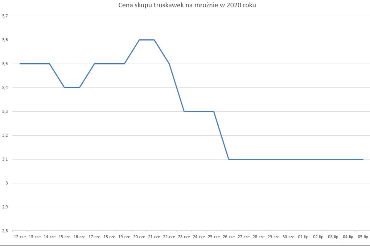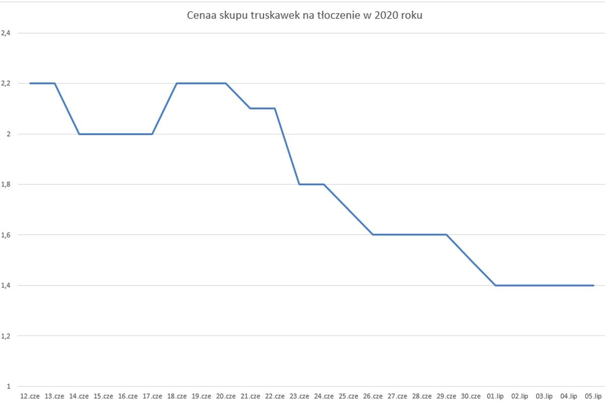 W ubiegłym roku, w zagłębiu grójeckim skup truskawek dla przetwórstwa rozpoczął się około 12 czerwca. Wyjściowe ceny wynosiły 3,50 zł/kg w przypadku truskawek na mrożnie oraz 2,20 zł/kg dla truskawek na tłoczenie. Biorąc pod uwagę wzrost kosztów produkcji wynikający z inflacji, a także tegoroczną jakość, ceny w tym sezonie teoretycznie powinny być zdecydowanie wyższe.