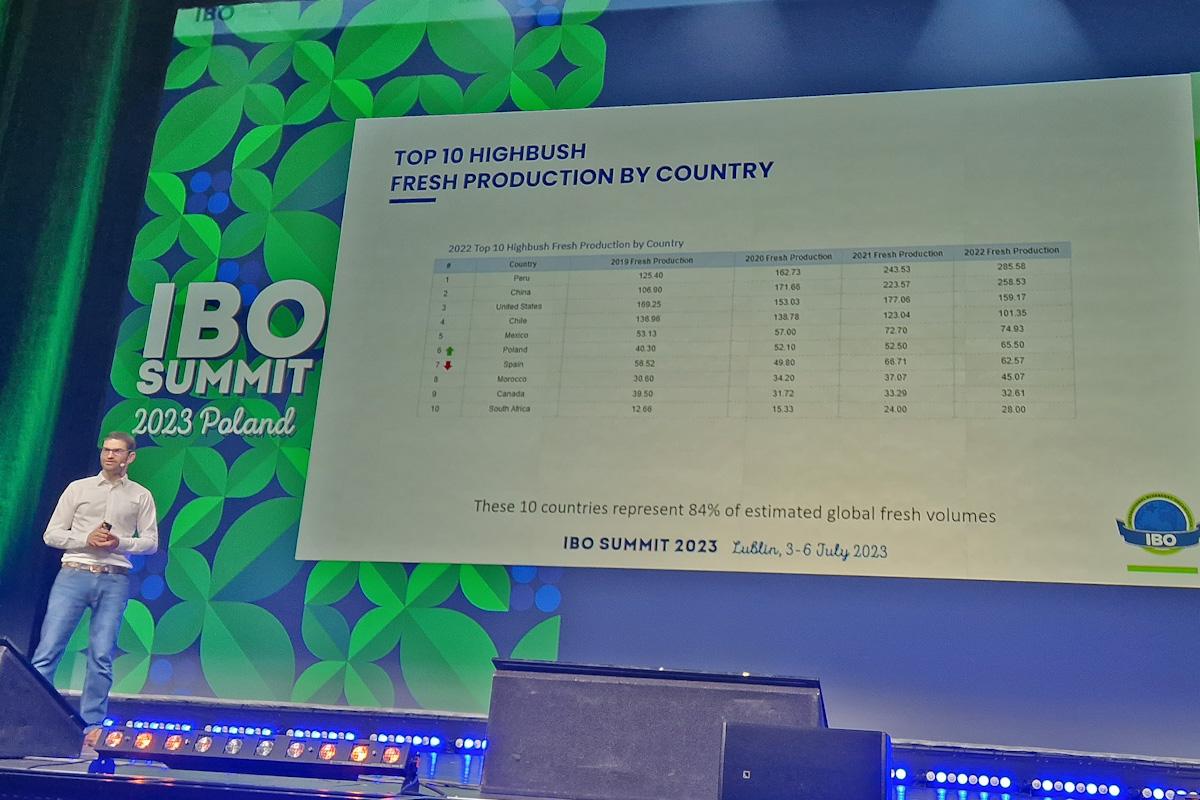 Największym producentem deserowych borówek na świecie jest Peru. Przy produkcji zbliżającej się do 300 tysięcy ton jedynie 14 tysięcy ton trafia do przetwórstwa.