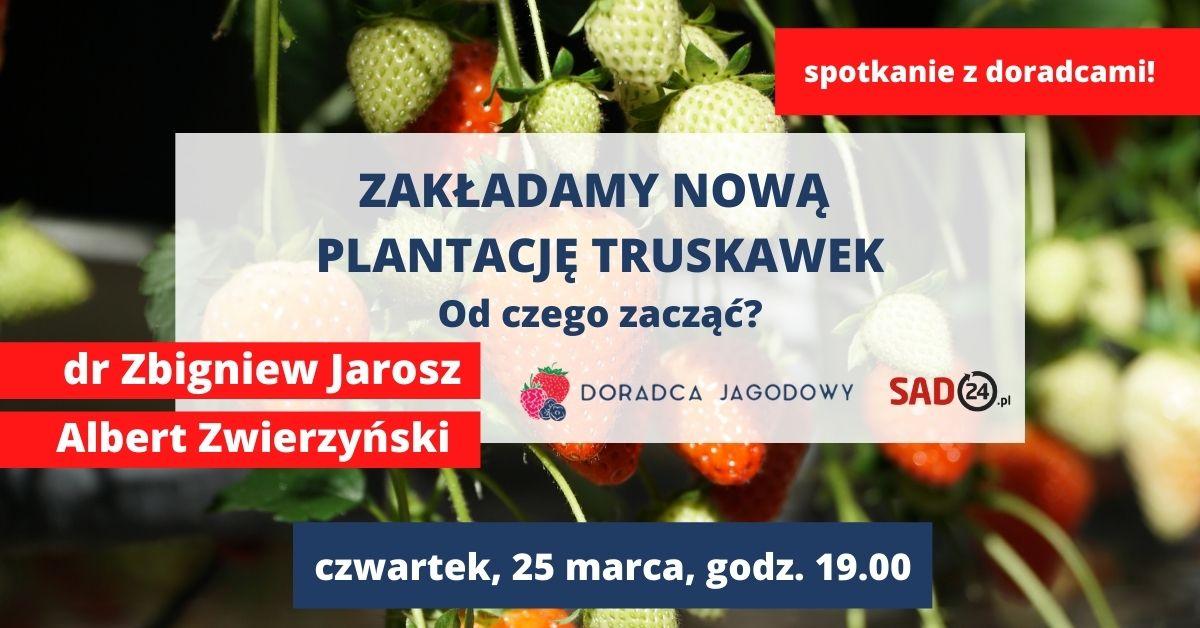 Rozważasz założenie nowej plantacji truskawek? Już w czwartek, 25 marca, o godz. 19.00 zaplanowaliśmy spotkanie z dr Zbigniewem Jaroszem i Albertem Zwierzyńskim z Doradcy Jagodowego. Będziemy rozmawiać o wszystkich aspektach związanych z rozpoczęciem uprawy truskawek. Zapraszamy.