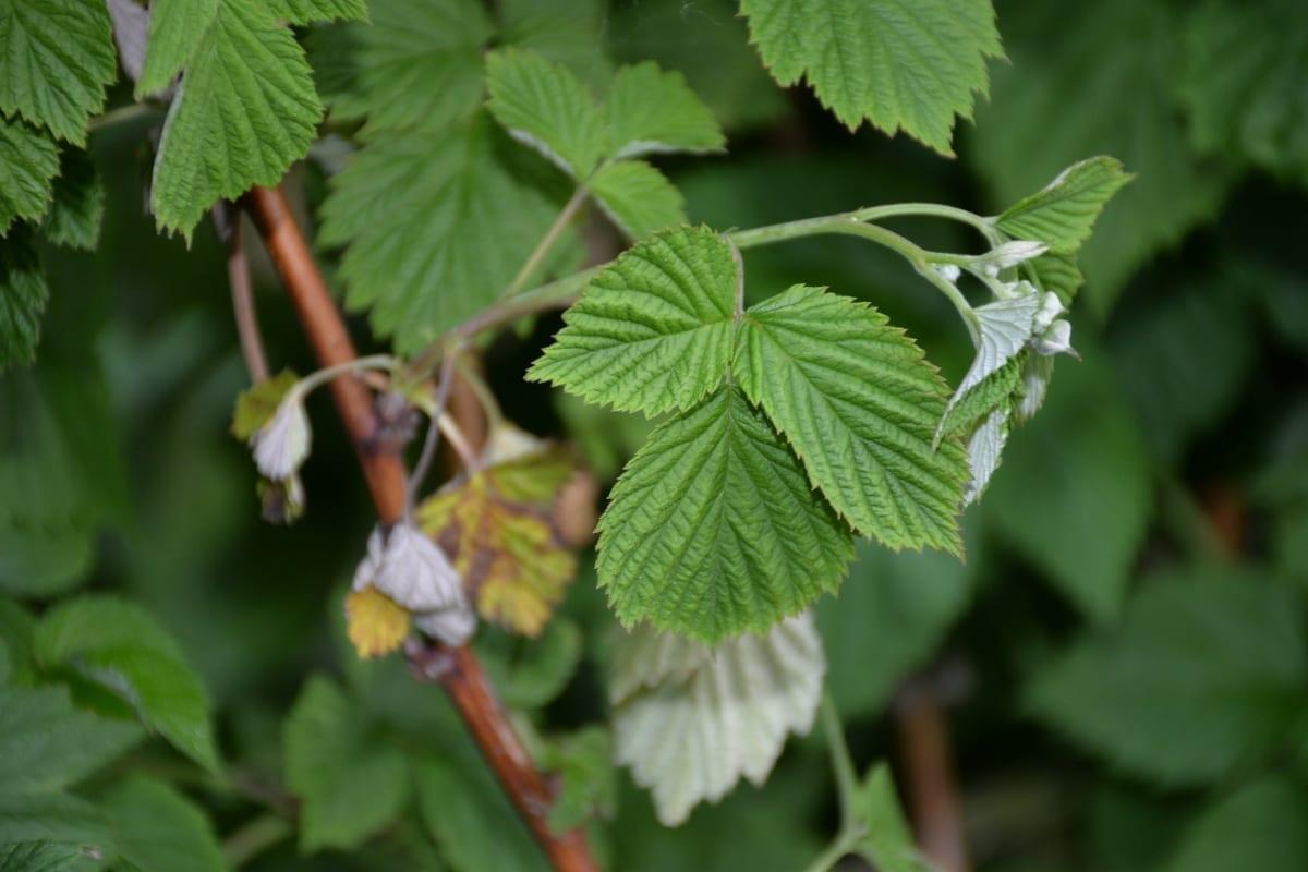 Szara pleśń, zamieranie pędów. W tym sezonie podczas kwitnienia wytępuje silne presja ze strony grzyba powodującego szarą pleśń. Dlatego ochronę w tym momencie warto kontynuować korzystając z fungicydów o działaniu interwencyjno-zapobiegawczym. Takim fungicydem jest Luna Sensation 500 SC w dawce 0,8 l/ha. Do zabiegów przeciwk szarej pleśni w okresie przed zbiorczym można wykorzystać również Teldor 500 SC w dawce 1,5 l/ha (karencja 7 dni) oraz do zabiegów na początku zbiorów Serende ASO w dawce 8 l/ha (brak okresu karencji). Na plantacjach można zaobserwować więdnące pędy kwiatostanowe. Jest spowodowane porażeniem pędów w ich dolnej części w poprzednim sezonie przez grzyby powodujące zamieranie pędów maliny oraz uszkodzeniami mrozowymi po zimie i wiośnie u podstawy pędów kwiatostanowych.