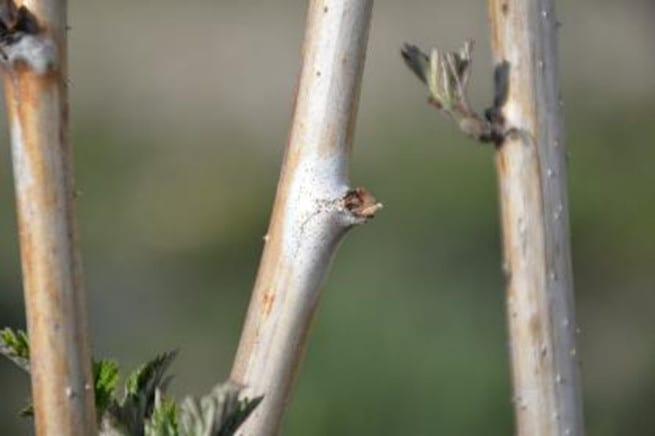 Zamieranie pędów maliny. W tej chwili stwierdza się umiarkowane porażenie pędów malin odmian letnich z roku poprzedniego. Będą one stanowiły źródło infekcji młodych pędów. Dlatego też należy opracować strategię zwalczania dostosowaną do istniejącej sytuacji na plantacji. W momencie gdy jednoroczne pędy na plantacjach odmian letnich dorosną do wysokości 10-15 cm należy je usunąć. Usuwając pędy ogranicza się również występowanie pryszczarka namalinka łodygowego. Jeśli pędy nie będą usuwane należy rozpocząć ochronę chemiczną przeciwko zamieraniu pędów maliny. Do tego celu można użyć dwóch preparatów w odstępie 10-14 dni Zato 50 WG w dawce 0,2 kg/ha oraz Luna Experience 400 SC w dawce 0,6 l/ha. Ochronę przeciwko zamieraniu pędów maliny należy rozpocząć w uprawach tunelowych odmian jesiennych.