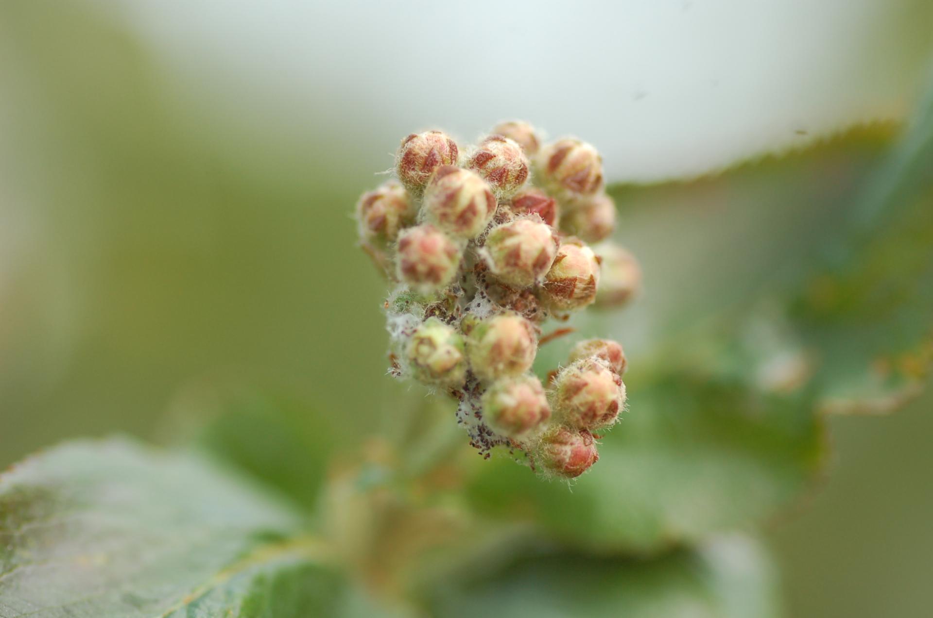 Na aronii pojawiają się kwiatostany (faza BBCH 55 – czyli są widoczne pierwsze pąki kwiatowe, w postaci zbitego grona, obok rozwiniętych liści.