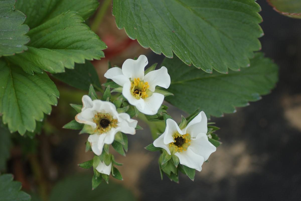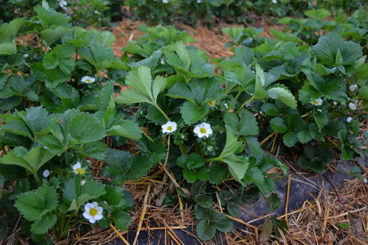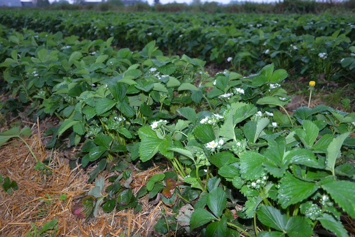 Plantacje truskawek Odmiany wczesne i średniowczesne (przyspieszane pod agrowłókniną): ‘Alba’, ‘Allegro’, ‘Elsanta’ – pełnia kwitnienia (BBCH 65). Odmiany wczesne nieprzyspieszane: ‘Rumba’– pojawiły się pierwsze pąki kwiatowe (BBCH 57).