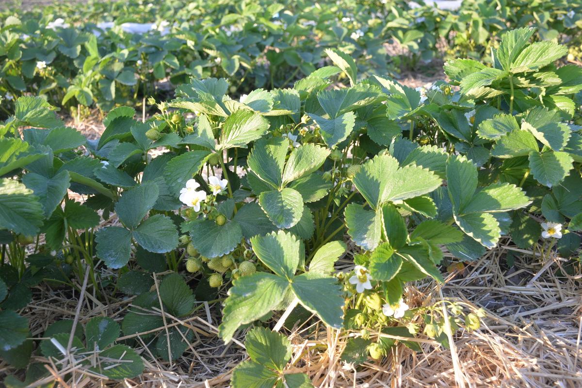 Na plantacjach truskawki w otwartym gruncie, zależnie od lokalizacji plantacji, od wczesności odmiany i okrywania roślin w okresie zimy i wczesnej wiosny rośliny znajdują się w fazie od BBCH 65 - u odmian wczesnych nieokrywanych (‘Allegro’) i średniowczesnych okrywanych (‘Grandarosa’, ‘Roxana’), u których obserwuje się kwitnienie pełne: otwarte kwiaty wtórne (B) i trzeciorzędowe (C), pierwsze płatki opadają (fot. 1-3) do BBCH 73 – w odmian wczesnych okrywanych (‘Allegro’), u których wyraźnie widoczne są nasiona na tkance zawiązka (fot. 4).