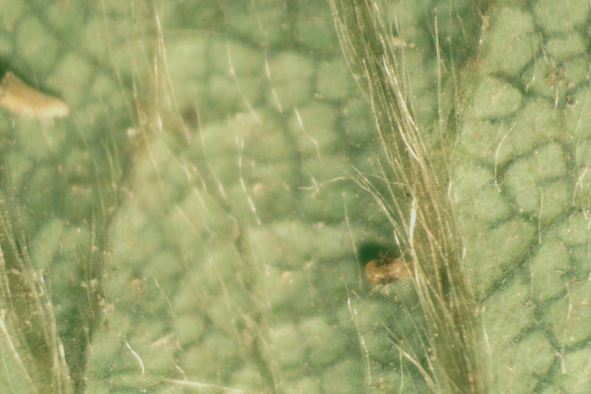 Fot. 5. Przędziorek chmielowiec na spodniej stronie liścia truskawki