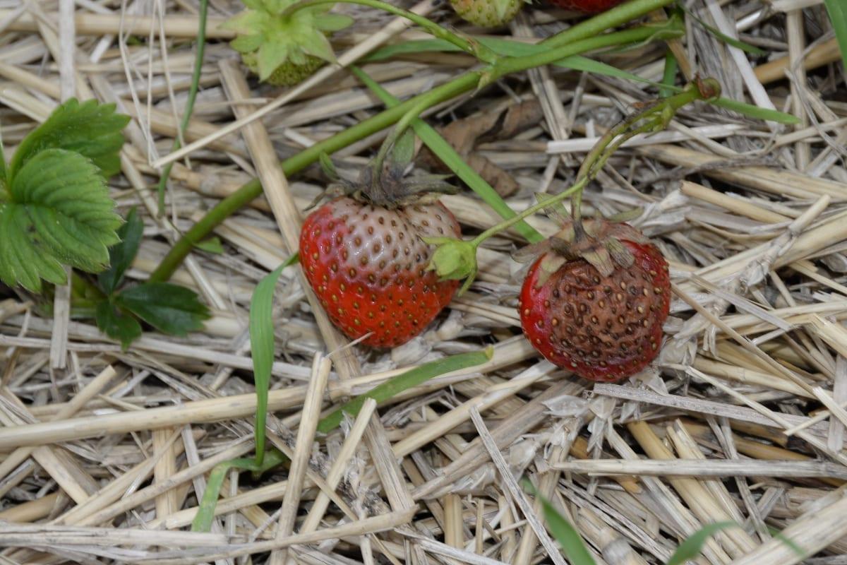 Na liściach odmian wrażliwych na mączniaka pojawiają się pierwsze objawy choroby. Obecnie występuje bardzo silna presja ze strony szarej pleśni. Objawy można obserwować na owocach, zawiązkach, ogonkach liściowych oraz na kwiatostanach. Dotyczy to wszystkich grup odmian. Na plantacjach, na których trwają zbiory obserwuje się niezadawalającą trwałość owoców po zbiorze. Przy braku warunków chłodniczych szybko dochodzi do pleśnienia owoców. Bardzo szybko wzrasta zagrożenie ze strony skórzastej zgnilizny owoców. Na niektórych plantacjach można spotkać pierwsze owoce z objawami antraknozy. W związku z tym warto na początku zbiorów sięgnąć po fungicydy o krótkim okresie karencji, np. 2 zabiegi przeciwko szarej pleśni Teldor 500 SC (1 dzień karencji) w dawce 1,5 l/ha lub preparatem Serenade ASO (brak okresu karencji) w dawce 8 l/ha (będzie to również zabieg przeciko mączniakowi truskawki). W przypadku nie korzystania w poprzednich zabiegach z Luna Sensation 500 SC (3 dni karencji) warto wykonać opryskiwanie tym fungicycydem w dawce 0,6-0,8 l/ha (będzie to wówczas zabieg przeciwko kilku chorobom: szara pleśń, mączniak prawdziwy, biała plamistość, antraknoza, skórzasta zgnilizna owoców).