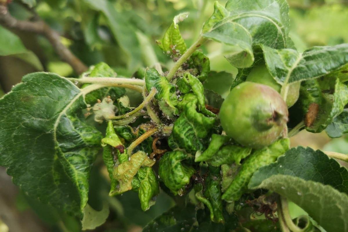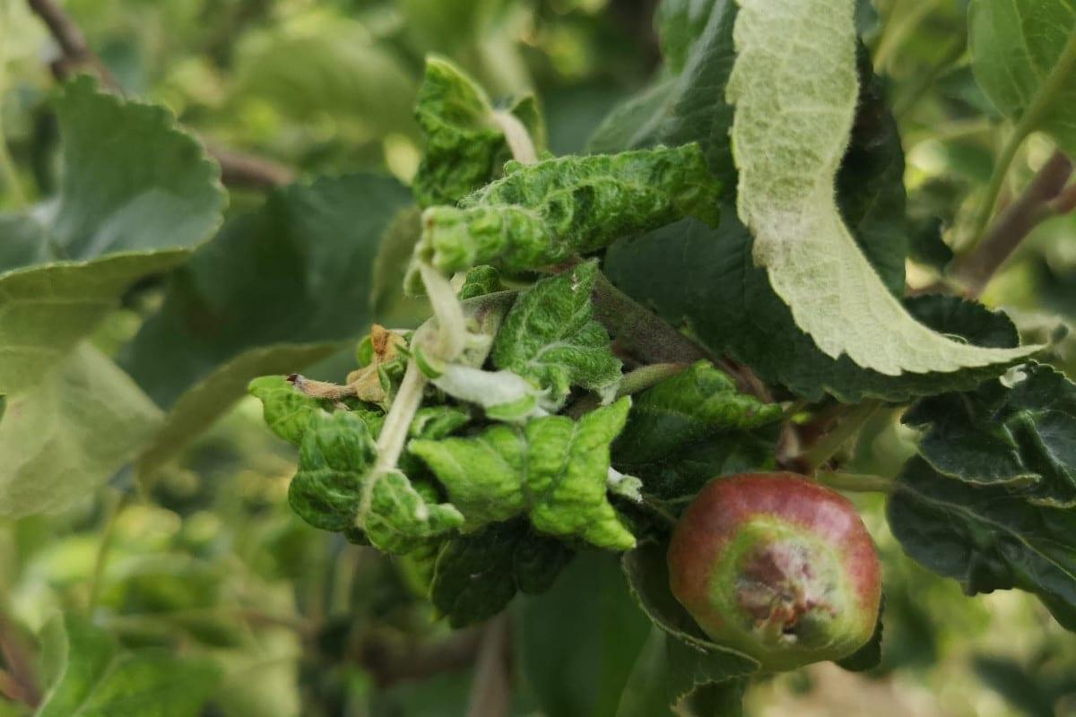Niestety, nie we wszystkich sadach sytuacja jest pod kontrolą. Tam, gdzie spóźniono się z zabiegami wiosną, przed kwitnieniem jabłoni, trudno opanować presję ze strony mszycy jabłoniowo-babkowej. Pędy są poskręcane, a owoce zdeformowane. Problem dotyczy nie tylko skrajnych drzew.